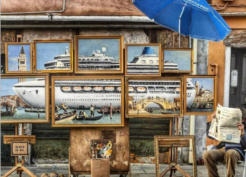 Rather fittingly, we went to see the Banksy exhibit at Sydney Town Hall during my last weekend and among a lot of other powerful pieces, it included his brilliant “Venice in Oil” piece. This was his uninvited contribution to the 2019 Biennale and it’s probably the best and most succinct artistic commentary on the subject. It’s an assemblage of oil paintings of, well, a modern Venitian landscape…: